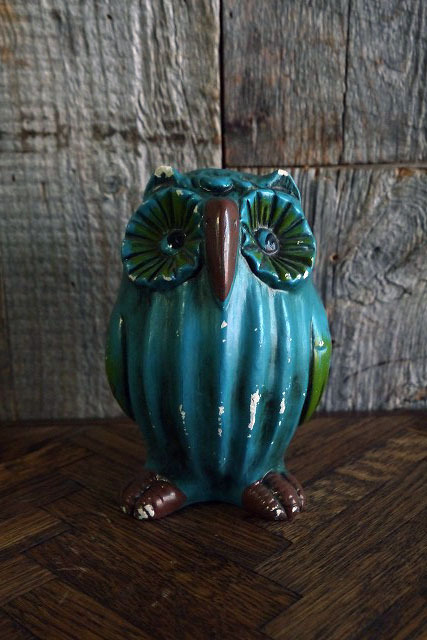 - ビンテージOWL貯金箱 B [goct-371]検アメリカUSAフクロウ/サイケデリックカラーPEACEコレクションコインバンク雑貨JAPAN製石膏置物