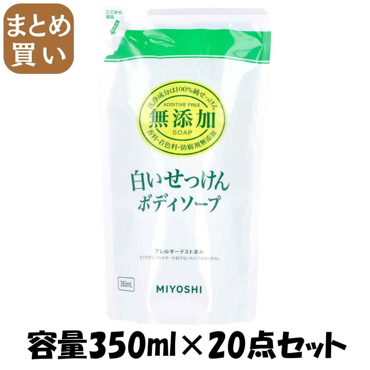 - 【まとめ買い】無添加 ボディソープ白いせっけん詰め替え 容量350ML×20点セット ミヨシ石鹸 ボディソープ