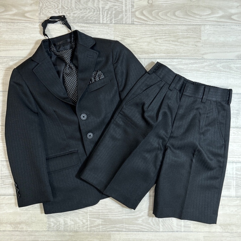 - OLIVER HOUSE/オリバーハウス/キッズフォーマル ジャケット+パンツ+ネクタイ3点セット/ブラック/ストライプ/スーツ/110A