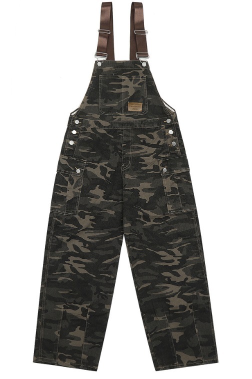 - デニムオーバーオール サロペット メンズ ゆったり つなぎ オールインワン ワークパンツ 作業服 迷彩柄/M