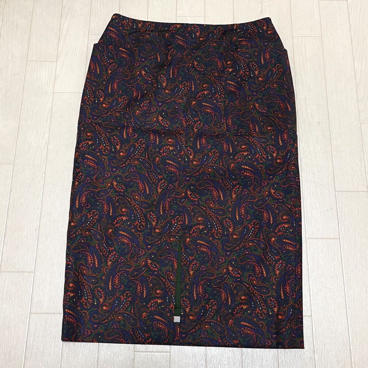 > 和738★ GREEN LABEL RELAXING グリーンレーベルリラクシング タイトスカート ペイズリー ロングスカート 38 グリーン ネイビー レディース