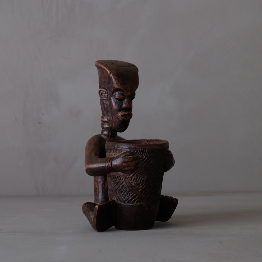 - 03650 アフリカ 小物入れ付き木彫 / オブジェ プリミティブ アート アンティーク