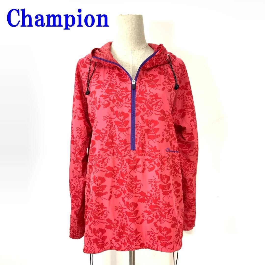> チャンピオン ジャンパー プルオーバー フード付き Champion レッド オレンジ 裏地メッシュ総柄 赤 L C2638
