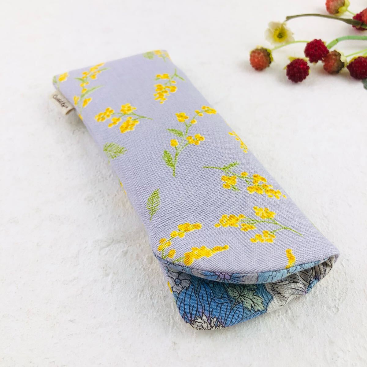 - ミモザのふかふかメガネケース ハンドメイド 眼鏡ケース ミモザ柄