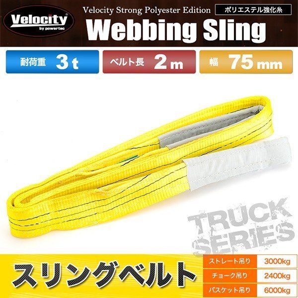 - スリングベルト 荷重3t ベルト長2m 幅75mm 両端アイタイプ