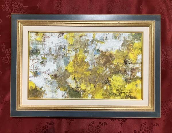 - 笠松英生●真作●かさまつ ひでお●キャンバスに油彩 肉筆原画 直筆サインあり■抽象画 現代アート 現代美術■中央下に若干のひび割れあり