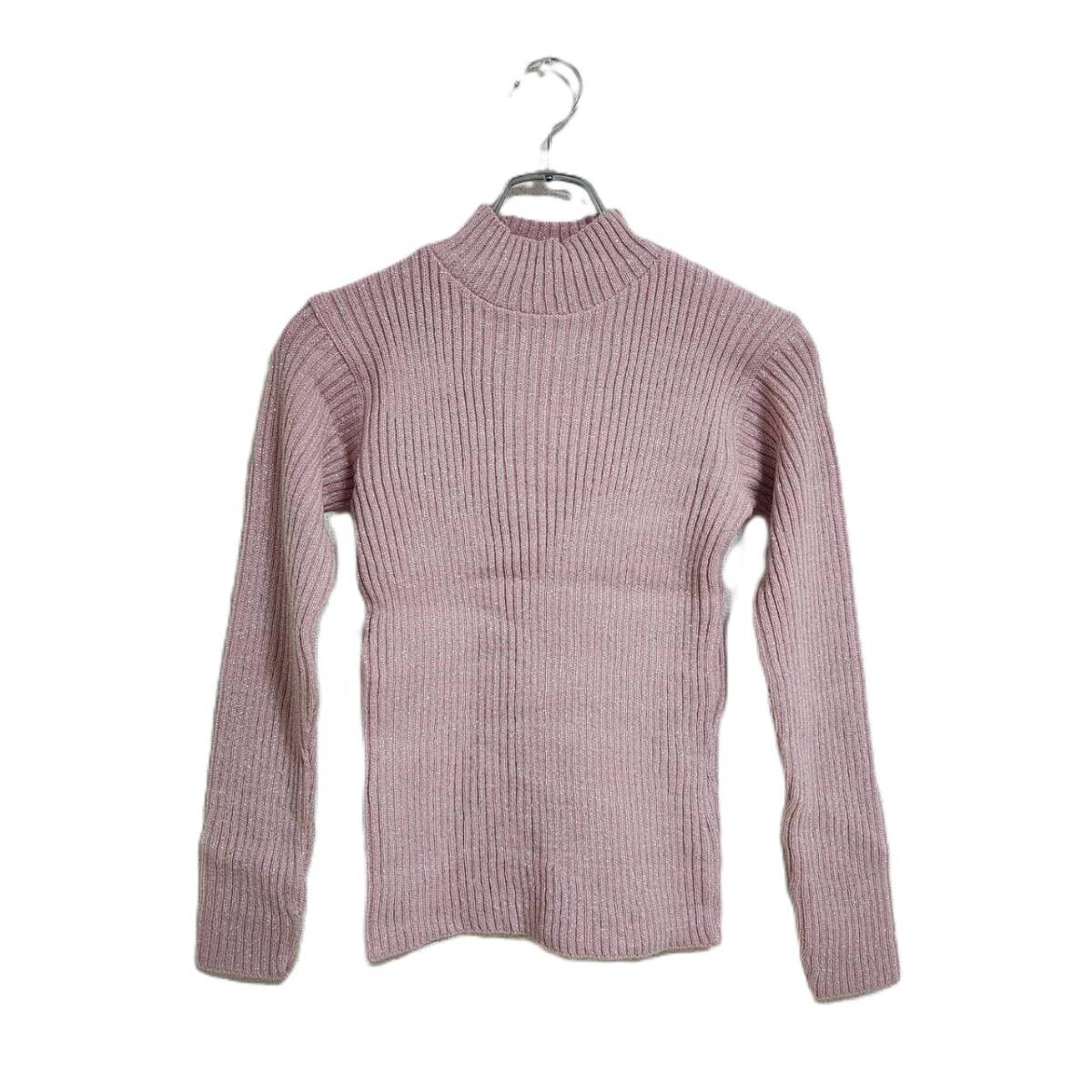 - ニット ハイネック ピンク 長袖 F ラメ リブ編み セーター M インナー 秋