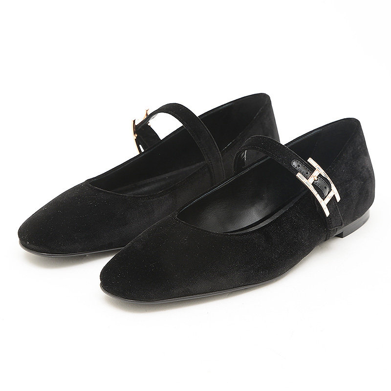 - エルメス バレエシューズ ジェーン ベロア/クリスタル ブラック 36.5サイズ H242046Z