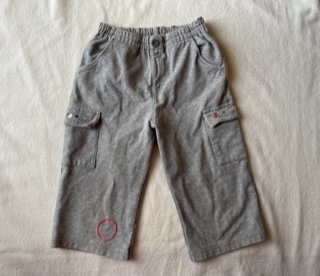 - ファミリア★カーゴパンツ★120★ポケットに刺繍たくさん★グレー★少々難★ハーフパンツ★スエットパンツ