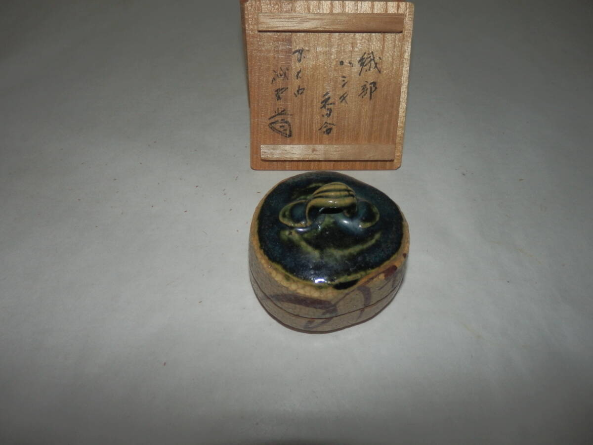 - 『大徳寺』藤井誡堂師書付 山口錠鉄作 織部ハジキ香合 桐共箱