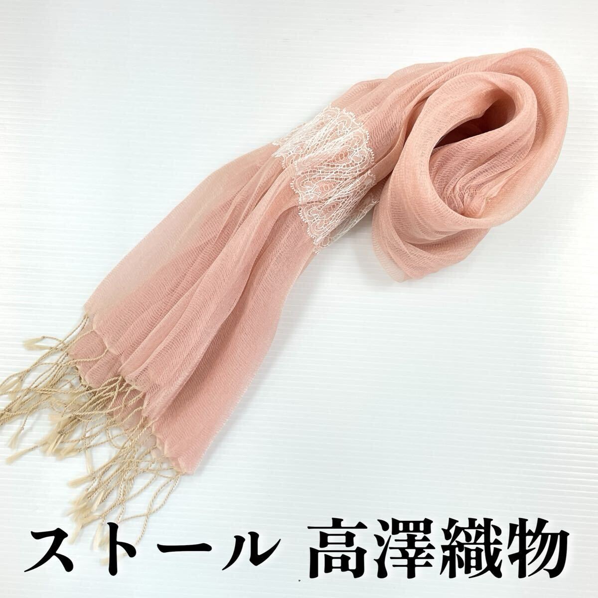 > 【ストール 高澤織物】未使用 シルク100% 春夏 スカーフ ショール 肩掛け 膝かけ 国産 日本製 防寒 ピンク系 #0263-728Z8