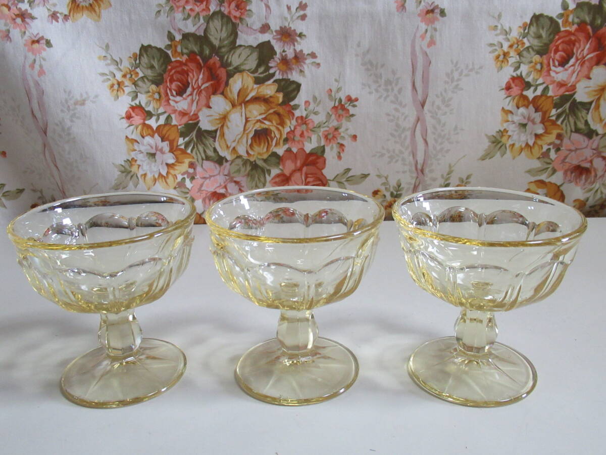 - R7 05★昭和レトロ ★デザートグラス3客セット 脚付きグラス 気泡あり