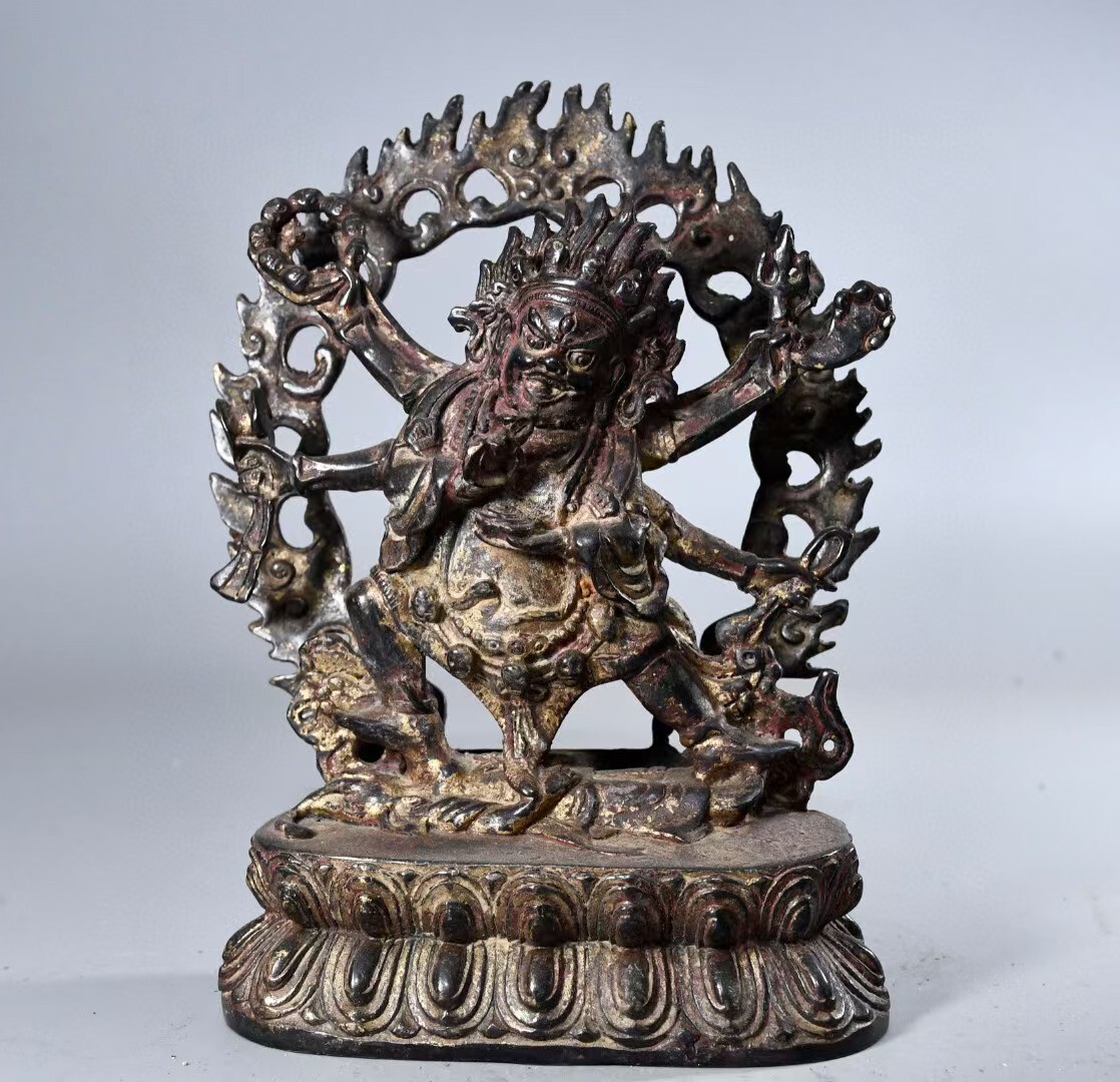 - 仏像 清代 旧蔵 チベット伝来を祭る. 古銅 六腕マハガガ像 銅琉金 仏教 唐物 收蔵品 時代物 古美術 細密造 古置物 希少珍品 供養品 5.23