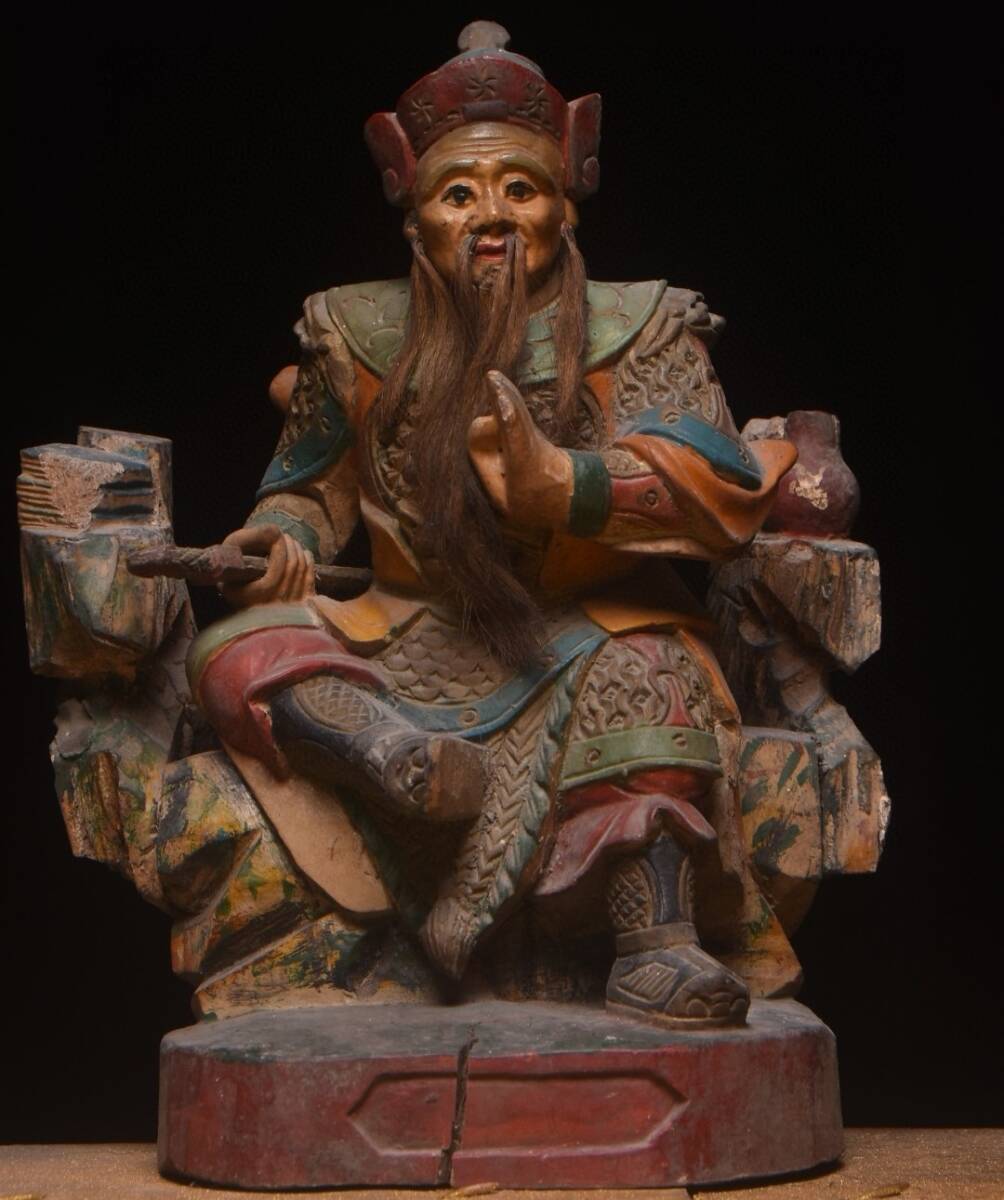 - 旧藏 中国 清代 古木彫 香樟木雕天王造像 供養品 細密毛彫 時代物 中国古美術 極細工 置物 木彫り 東洋彫刻 唐物 S75