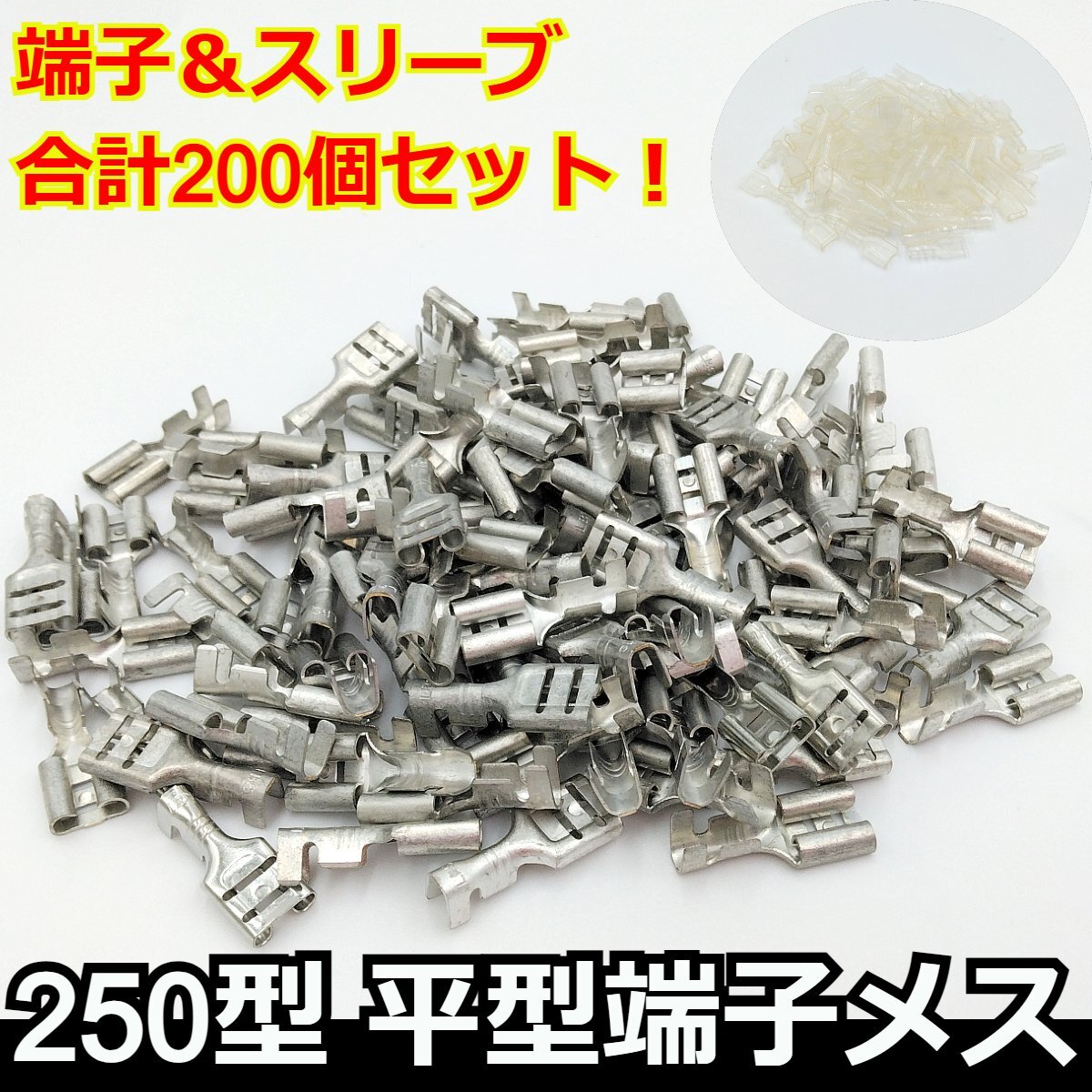 > 100セット★200個 ファストン端子 平型 250型 メス 絶縁スリーブ 車 バイク 接続 電線 加工 配線 ホーン ヘッドライト フォグランプ リレー