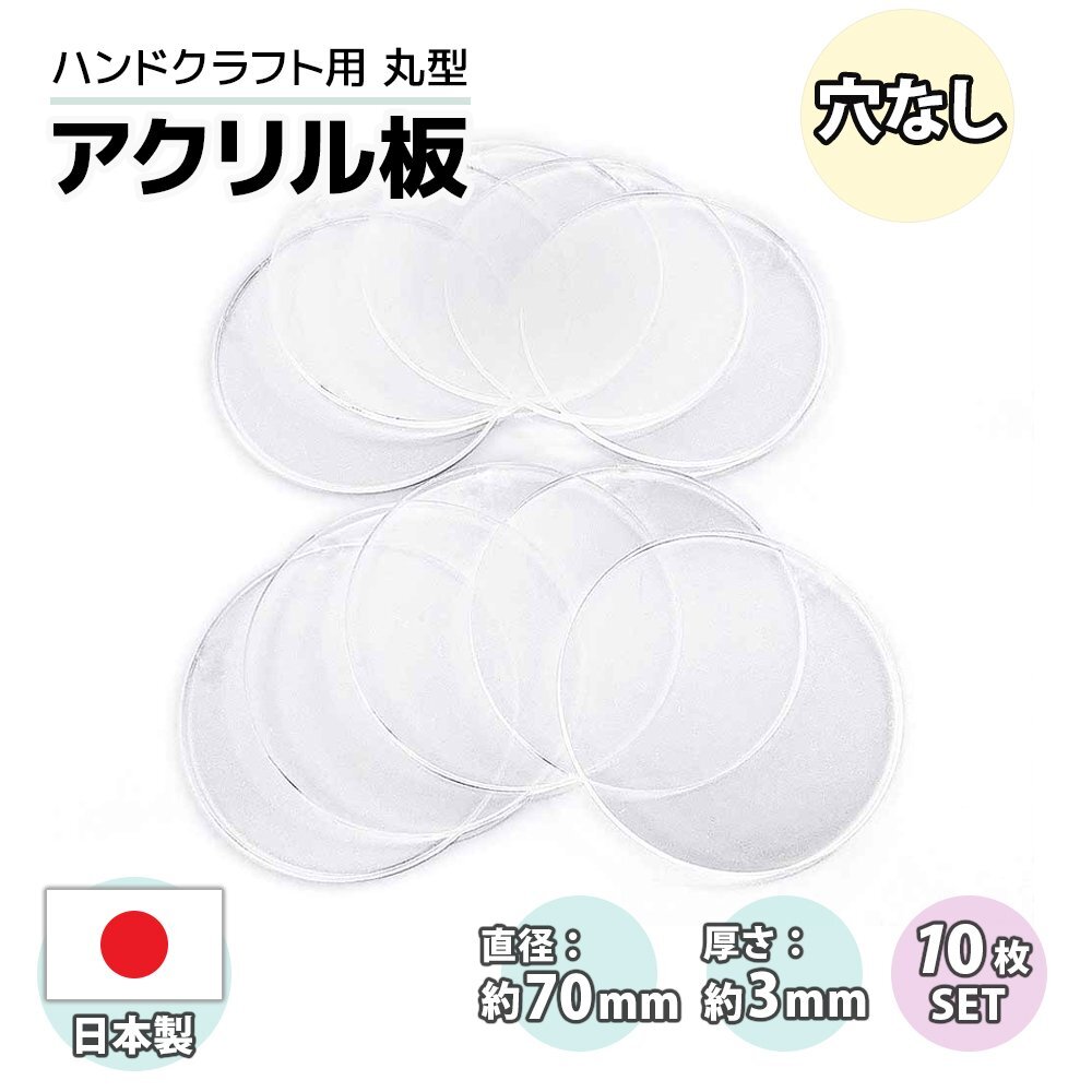 - 穴なし 円形 アクリル板 10枚 セット クリア 透明 工作 直径7cm 厚み3mm 丸型 作成 プレート 手作り こども 知育 手先 指 運動 手作り