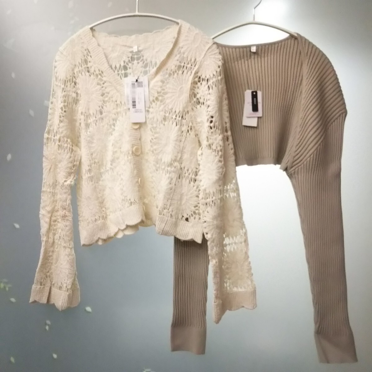 - 匿/ゆうパケット送込【未使用 タグ付き 2枚set】アイボリー クロシェレース / ベージュ ボレロ ショート