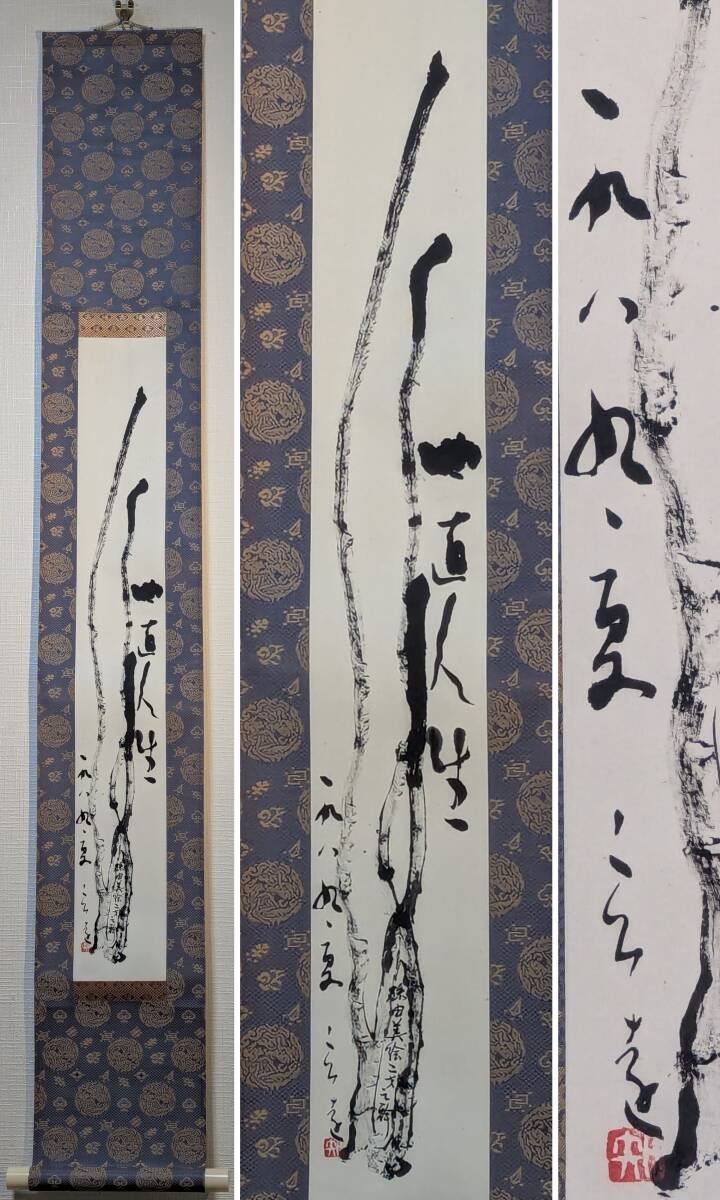 - 【真作】掛軸 墨書画 抽象表現と禅語 禅と抽象の調和 現代書画 S31