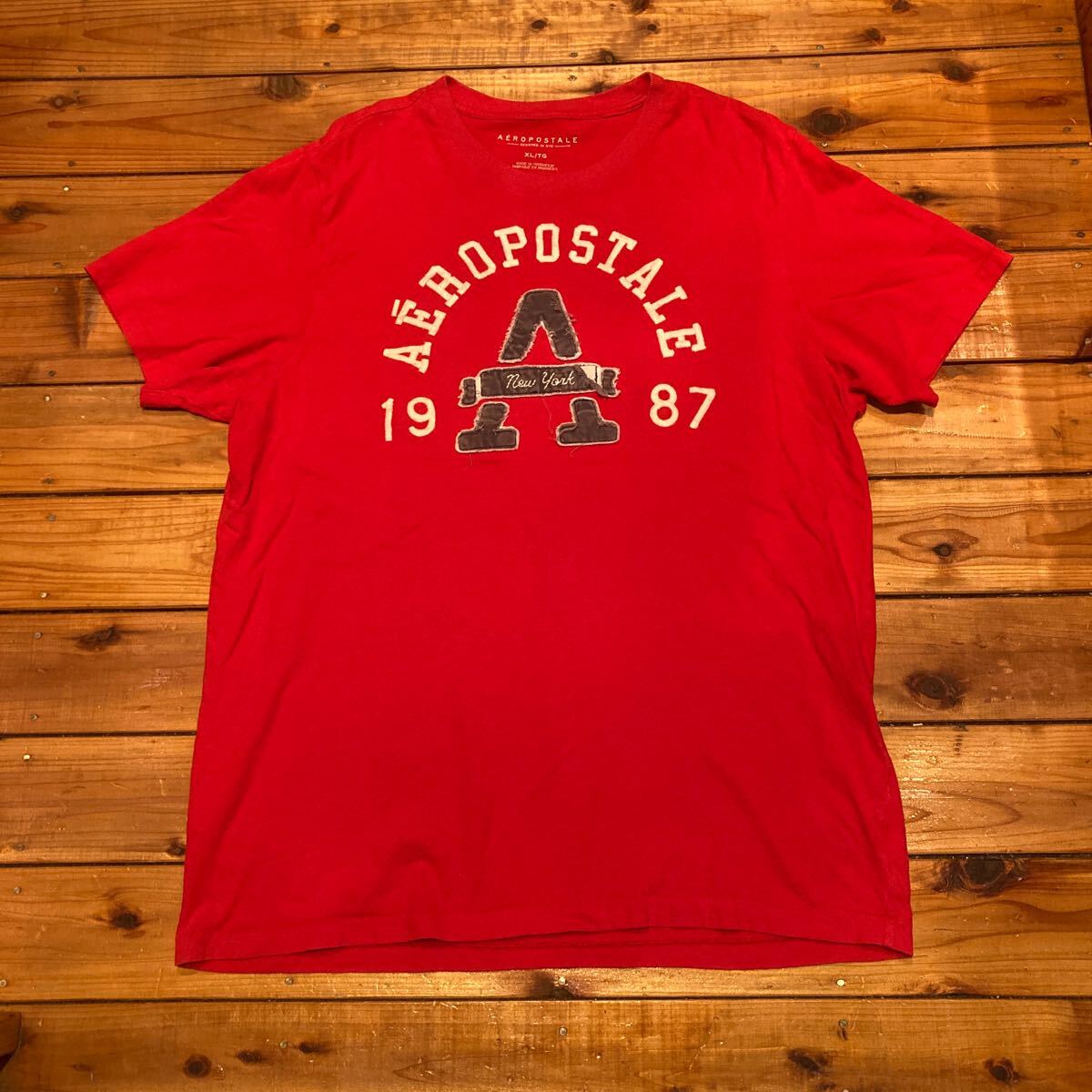 > AEROPOSTALE プリントTシャツ 半袖Tシャツ 刺繍 レッド系 XLサイズ アメリカ古着 USA古着