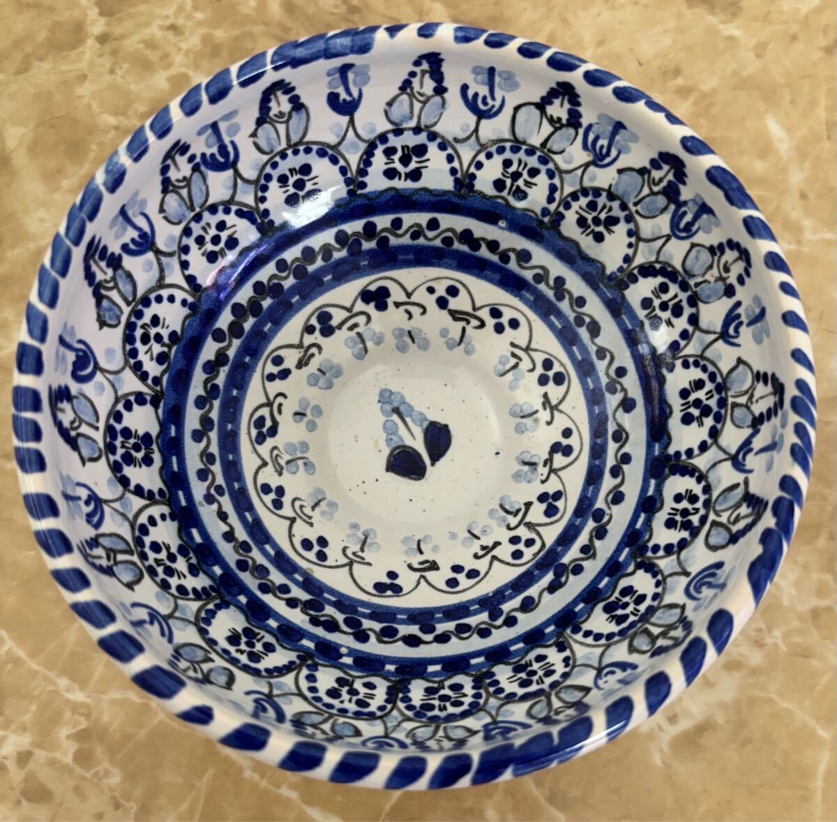 > スペイン ポルトガル 旅行 購入 食器 手書き 素焼き 陶器 スープ 椀 フルーツ 鉢 ブルー 手作り 素朴 可愛い 柄 欧風
