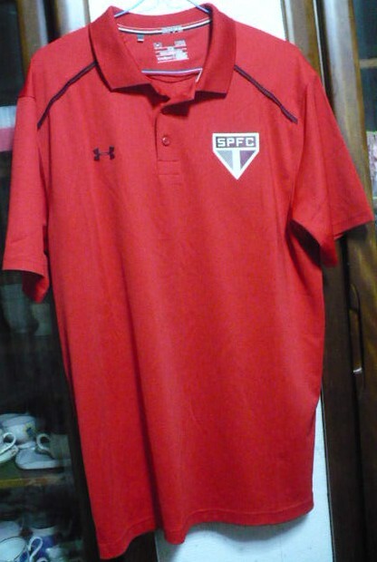 - レア物? UA【アンダーアーマー:(株)ドーム】製サンパウロ(SP)FC(ポリエステル製)ポロシャツ LG 赤
