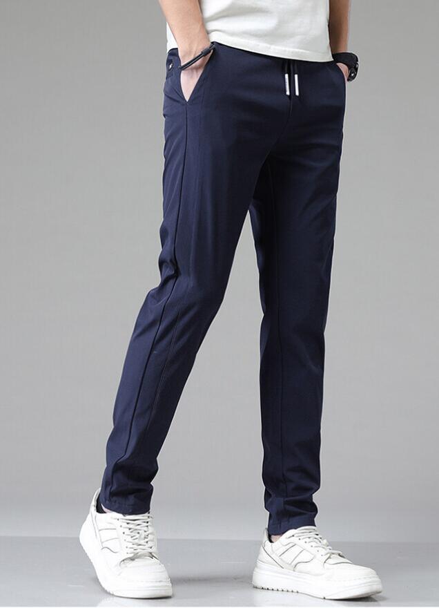 - 新品夏 薄手 トレンド メンズチノパンツ アイスシルク レギンスアイスシルク カジュアルパンツ メンズブルー 33お色選択可