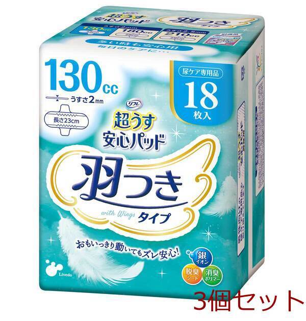 - リフレ 超うす安心パッド 多い時も安心用 羽つき 130cc 18枚入 3セット