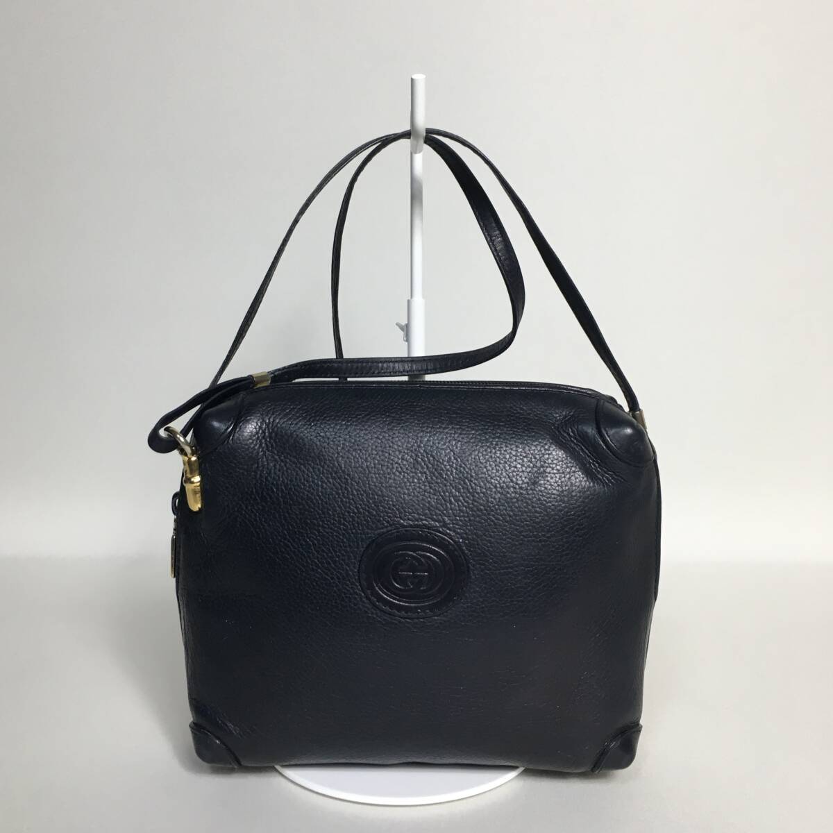- 74B231|グッチ ショルダーバッグ レザー ネイビー GGロゴ