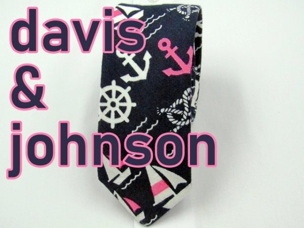 > 【 ナロー 細身ネクタイ】【デイヴィス&ジョンソン】 E 438 デイヴィス&ジョンソン davis & johnson ネクタイ 紺系 マリン プリント
