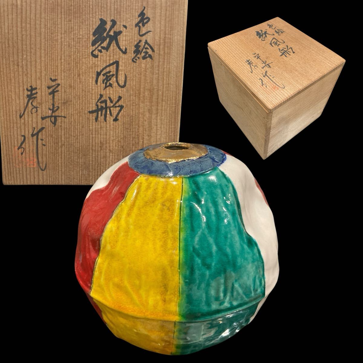- 色絵 紙風船 平安 孝作 一輪挿し 京焼 花瓶 置物 古美術 骨董 茶道具
