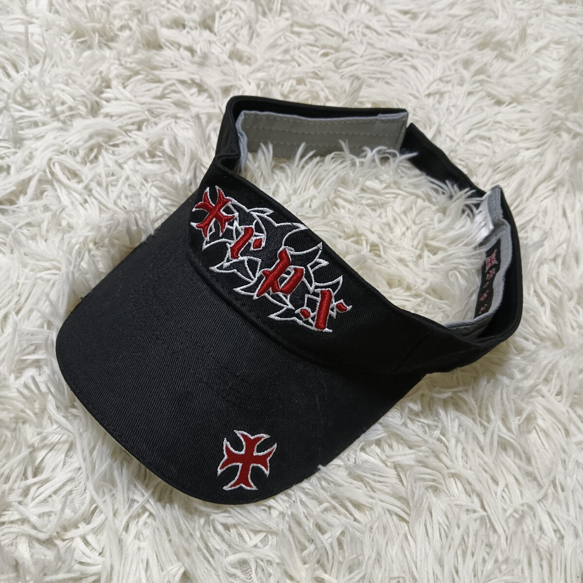 > 極美品☆trpx トリプルエックス ティーアールピーエックス 刺繍ロゴ サンバイザー ゴルフキャップ フリーサイズ ブラック 黒系 帽子 USED