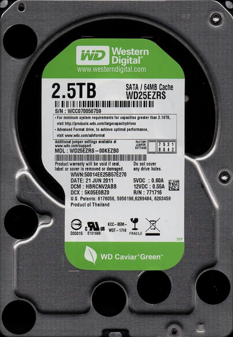 - WesternDigital WD25EZRS-00KEZB0 2.5TB SATA 5400rpm 2060-771716-001 PEV P1