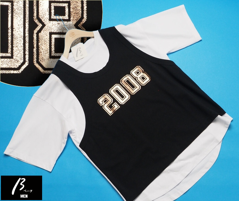 > 新品定価3.1万円 β MEN ベータメン 日本製 フェイクレイヤード コッパ―プリントTシャツL黒(05) 01TG06