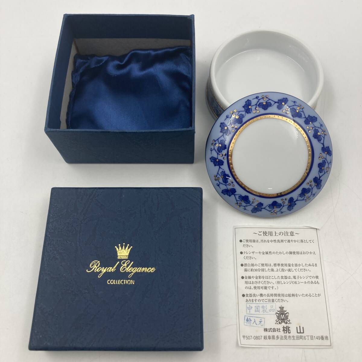 - 【美品】ロイヤル エレガンス ジュエリーボックス 陶器 蓋付 RE-200B-7 アクセサリー ケース 指輪 ピアス ネックレス Royal Elegance 桃山