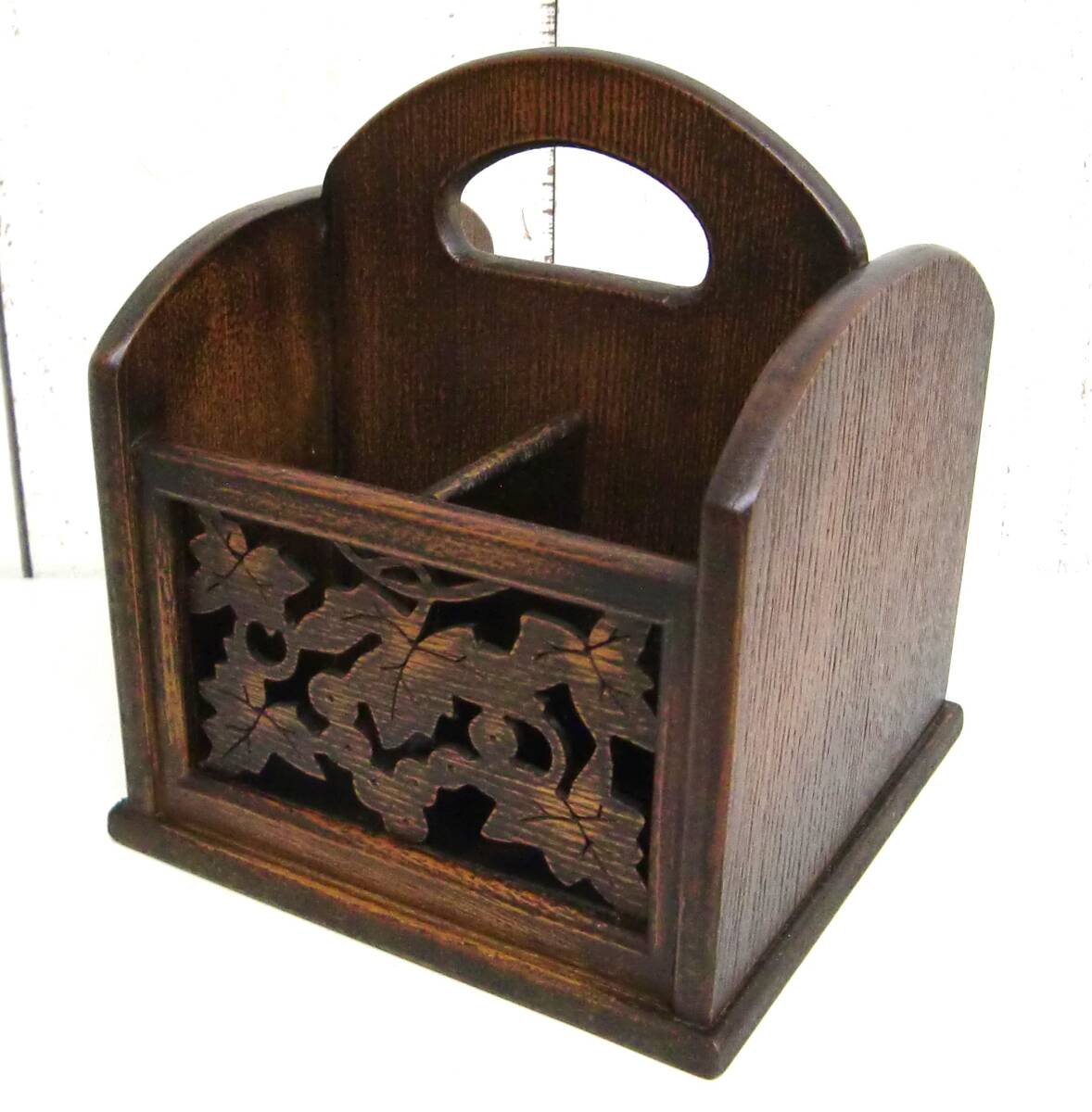 - 木製 葡萄樹 *持ち手付き リモコンラック リモコンスタンド *インテリア 雑貨 小物入れ 収納 卓上*16.5X16.5X18cm