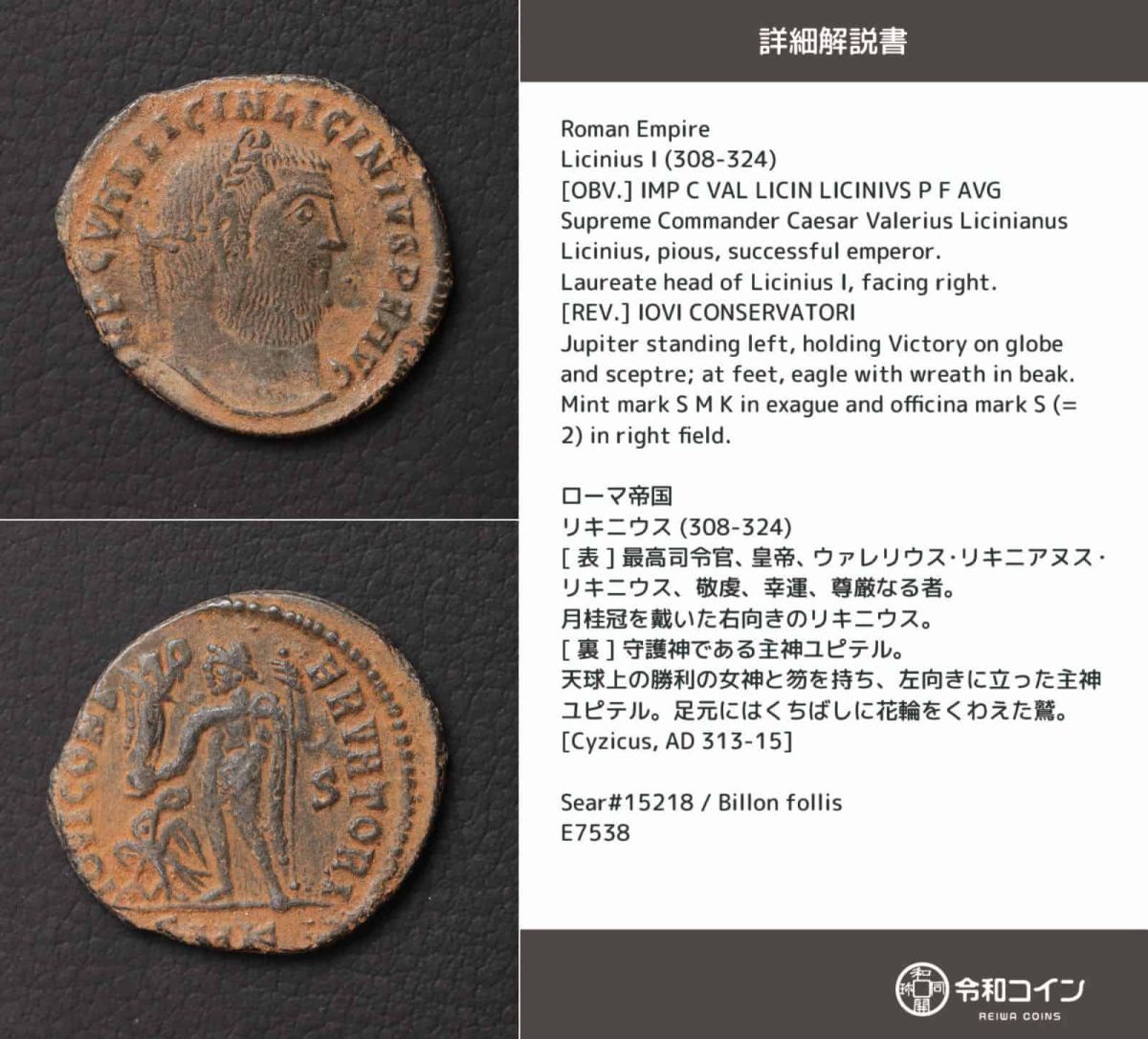 > *[令]リキニウス (308-324) 古代ローマコイン フォリス・ビロン貨【詳細解説書付】古代ギリシャ、銀貨[E7538]7j2
