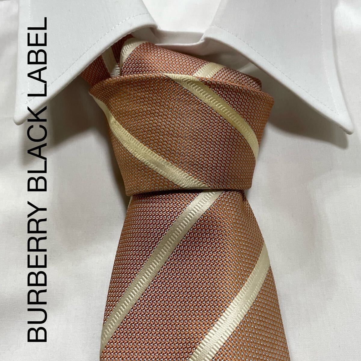 > BURBERRY BLACK LABEL バーバリーブラックレーベル ホース ロゴ ストライプ シルク ネクタイ 日本製 ピンク ホワイト TG1472