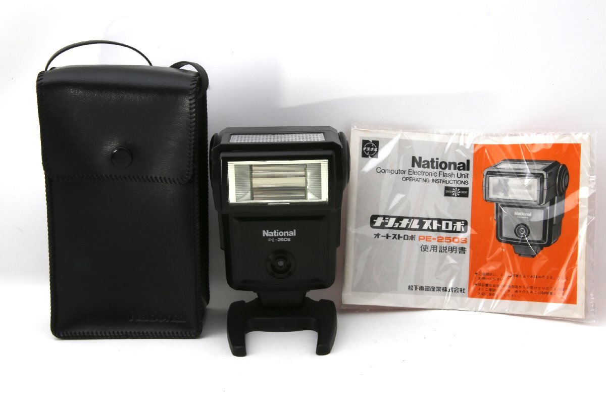 - 【美品】National PE-250S ナショナル オートストロボ フラッシュ スピードライト ケース付き #6473