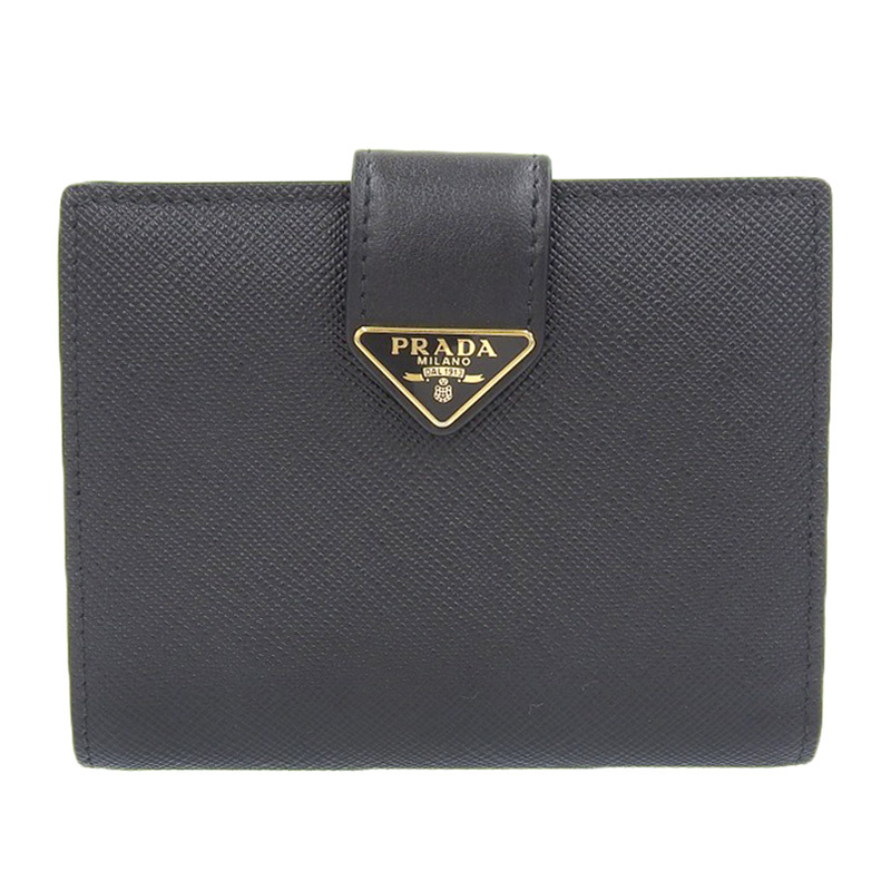 - プラダ PRADA 二つ折り財布 コンパクトウォレット サフィアーノ レザー ブラック 1MV204 中古 新入荷 OBB0621