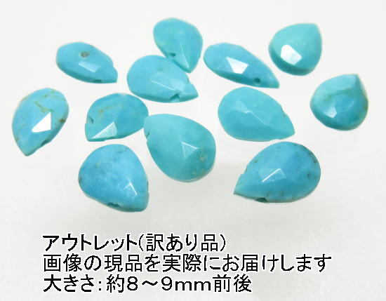 > (閉店価格)アウトレット(訳あり品)NO.7 ターコイズ ペアシェイプカット(12粒入り)<成功・繁栄>インド加工 天然石現品