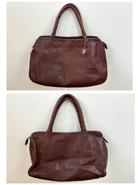 - IBIZA/イビザ 花柄 型押し 茶系 ハンドバッグ