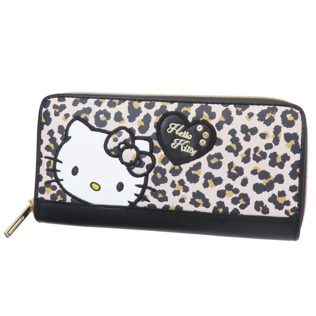 - ハローキティ レディース長財布 ラウンド束入れ ラウンドファスナーロングウォレット ワッペンキティ ヒョウ柄 サンリオ サンアート