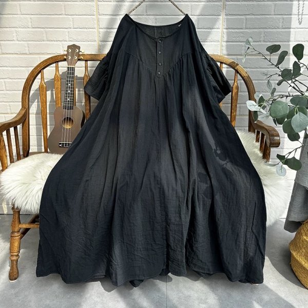 - yy ワンピース ゆったりダブルガーゼ ふんわり アンティーク風 ロマンファッション 純色 綿100% ブラック