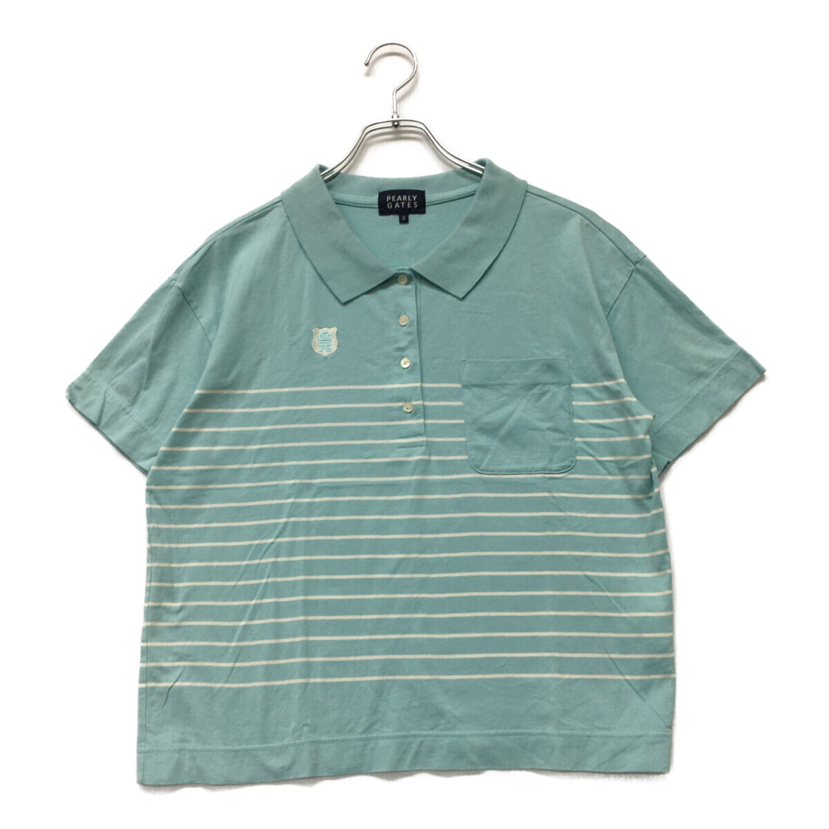 - coco 中古【値下げ】 パーリーゲイツ PEARLY GATES レディース 半袖ポロシャツ 0(S) 水色 ボーダー コットン素材 ネコパケ発送可 95700