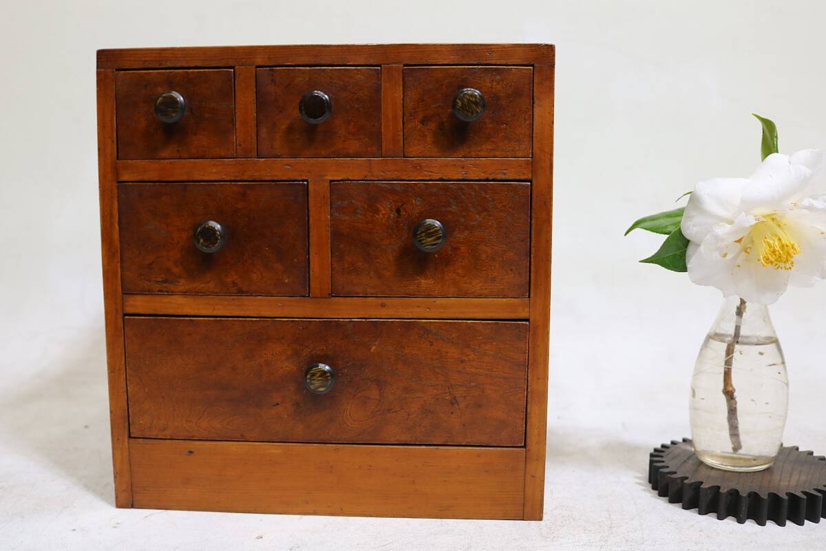 - 【伊董】C75.アンティーク!昭和レトロ!抽斗6杯!古い引出し楢製小抽斗昭和 #花台 #飾り台 #古道具 #ジュエリーボックス #和モダン