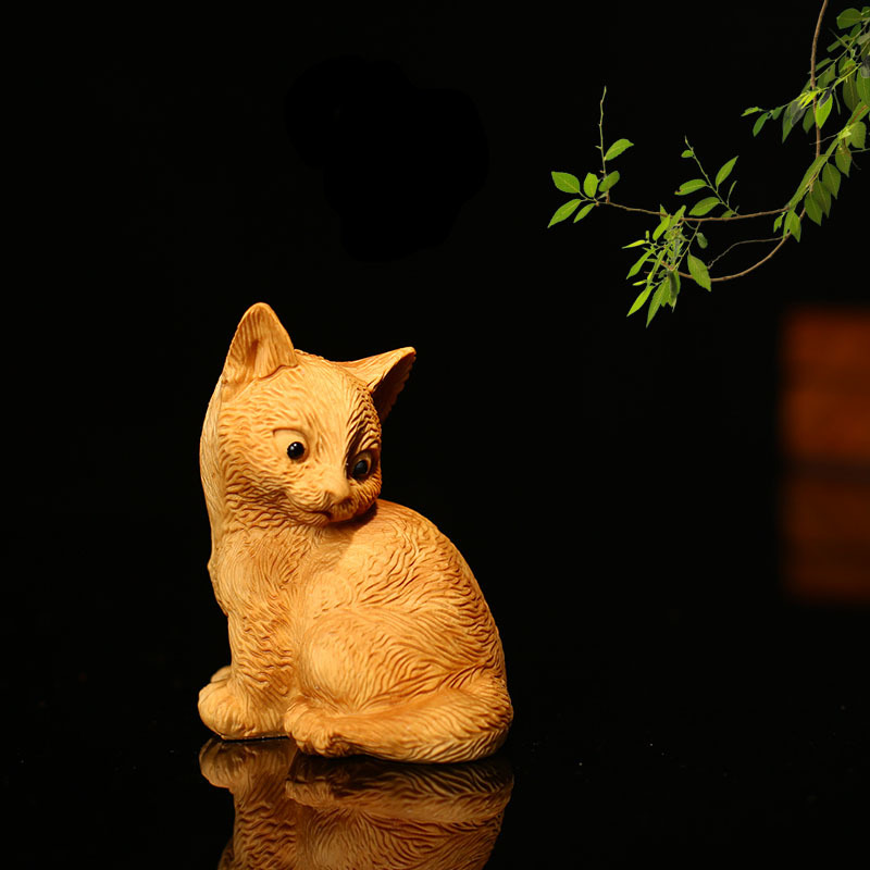 - 【柘植 木彫 動物】 ◆座る猫◆ ナチュラル/天然木製/手作り/ハンドメイド/細工彫刻/インテリア/プレゼント/縁起物