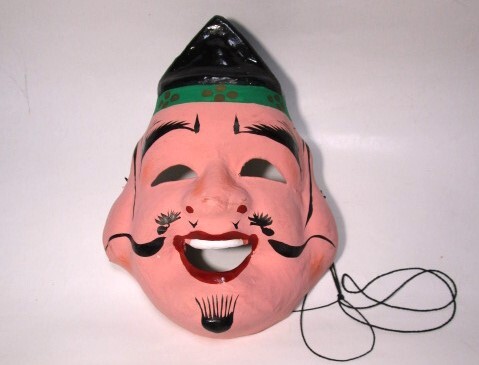 - 稀少 アンティーク★お面 張り子 恵比寿 七福神 目口空き 実用面 張子面 踊り面 伝統民芸品 郷土玩具★《検》三春張子 神楽面 飾り 壁掛け