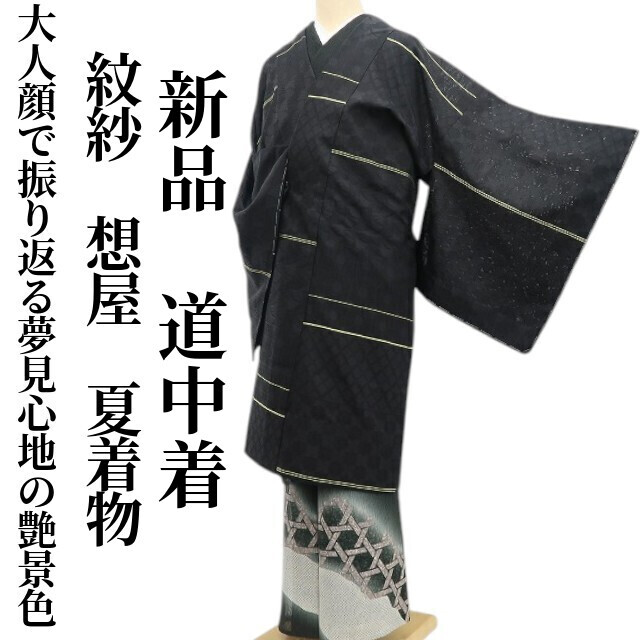 - tomihisa 新品 紋紗 想屋 夏着物 正絹“大人顔で振り返る夢見心地の艶景色”ロング丈 仕付け糸付 道中着 5857