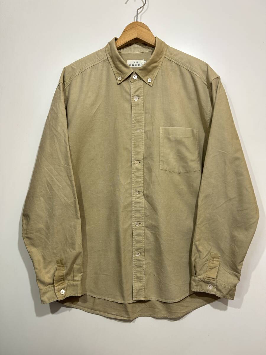 > ★ TRIP トリップ 長袖 コットンシャツ ボタンダウンシャツ 3 ベージュ 無地 BDシャツ 手染め ゆったり 日本製