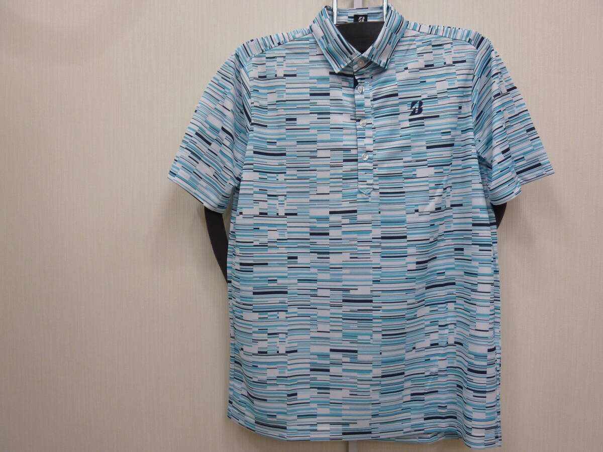 - 《新品》M・ ブリヂストンゴルフ ★ 半袖共衿 メッシュ シャツ★ ランダム ノイジーボーダープリント★ -3°C★ 3GY03A ★ ターコイズ / M